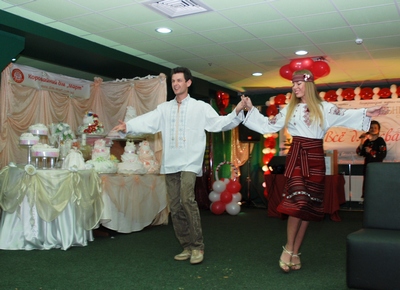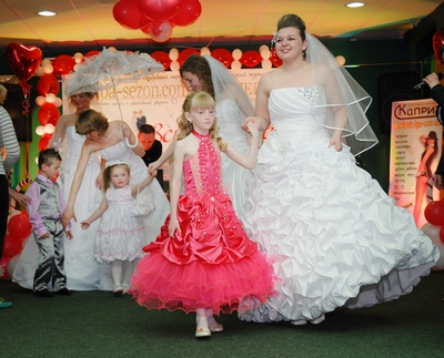 Все три выставочных дня проходили в активном режиме знакомств, представлений, мастер-классов, презентаций, показов и, конечно, розыгрышей!!! «Заводил» всех жизнерадостный голос профессионального организатора и тамады Марьяны Кузьмич. А началось всё с инсценизации основных моментов европейской свадьбы: встречи молодожёнов, первых поздравлений родителей, первого свадебного бокала шампанского, первого танца и первого поцелуя. Благо, с декорациями и артистами проблем не было – на выставке их было предостаточно!